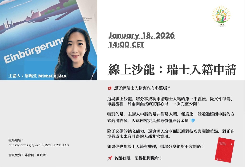 線上沙龍:瑞士入籍申請
