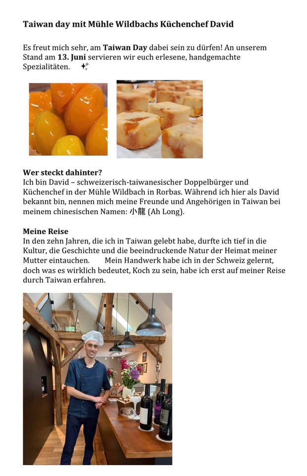 At the event, Simon will offer a selection of Taiwanese street food and drinks, including bubble tea and popular signature dishes—bringing the warmth and hospitality of Taiwan to Luzern.