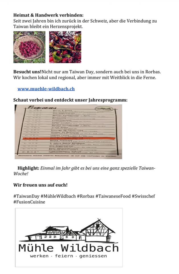 Jenny, originally from Kaohsiung, has been living in Winterthur near Zurich for over 15 years. Alongside running a guesthouse, she brings her passion for cooking to life through “Jenny’s Magic Kitchen.”